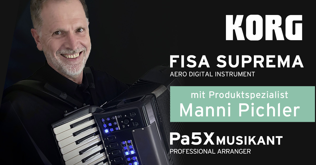 Testen Sie, lassen Sie sich beraten und freuen Sie sich auf Tipps und Tricks rund um das Digitalakkordeon FISA SUPREMA und den Pa5X MUSIKANT Professional Arranger.